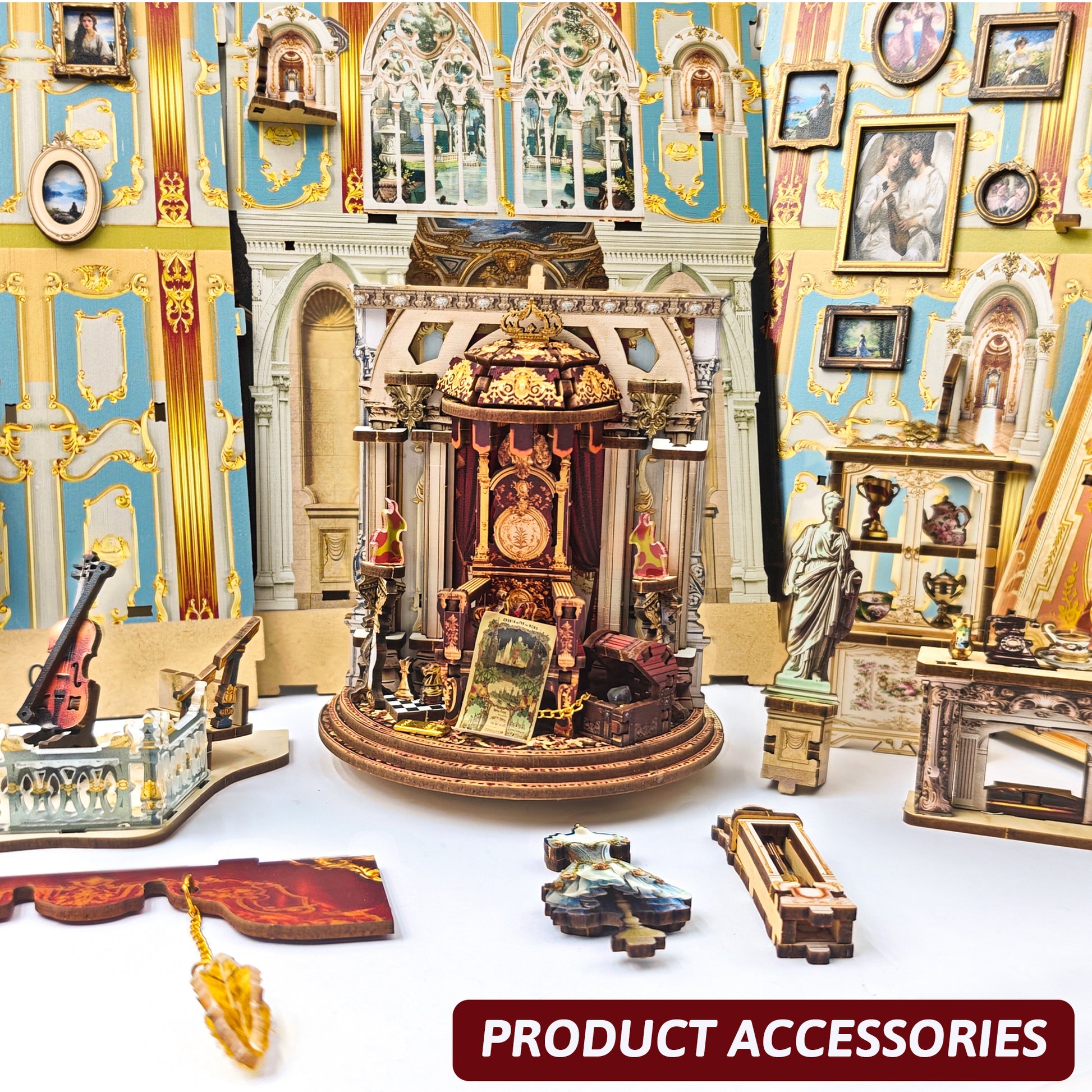 The Dreamland Theater DIY miniature kit turns your bookshelf into a glowing opera house filled with rotating stages, velvet drapes, warm lights and enchanting scenes. Build a tiny theater where kings take their throne, music fills the hall, and stories unfold with every turn.